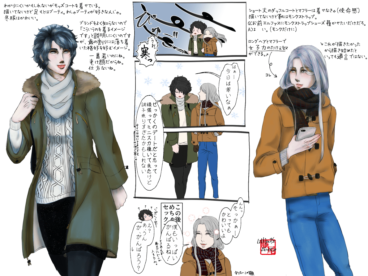 「冬服ってかわいいよね」ということが言いたいだけだったのですが、何か……現パロみたいになってしまいました。いや、現パロ……? うーん……何ていうか設定がガバガバっていうか、何も考えずに現代服着せたので、何も考えずに見て欲しい。