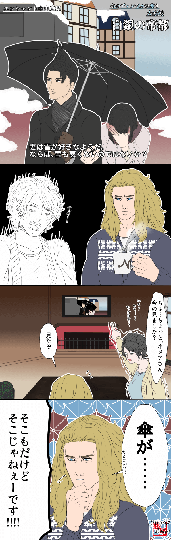 というわけで、当サイトの宰相はまだフリーです。私の書く宰相なら、まず帝都のインフラが雪の影響を受けていないかどうかとか、そんなこと気にすると思いますね。