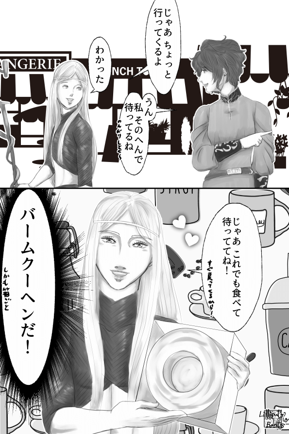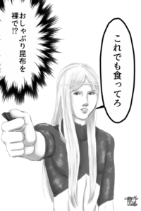 この前、エルファスが「どこそこへ行く」と言うので、「じゃあ、私はここで待っとるで。行っておいで」と言うと、「これでも食ってろ」とおしゃぶり昆布渡される夢を見ました。優しい。