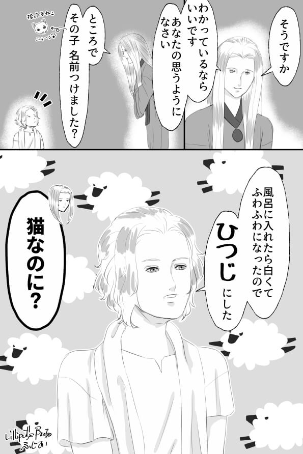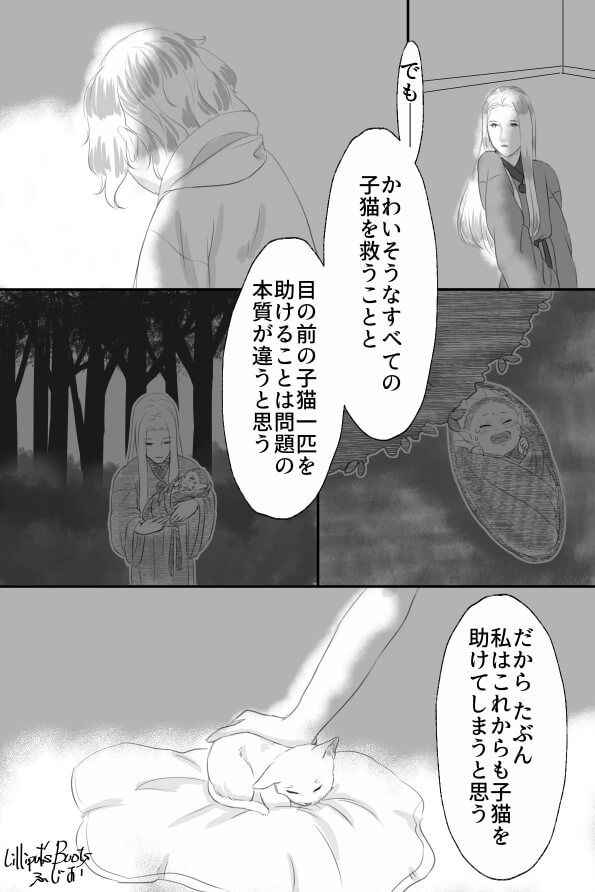 オルファウスさんはケリュネイアを育てることに迷ったけど、ネメアが子猫拾ってきた理由とおんなじような理由で育てるの決めた、みたいなことです。