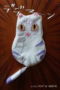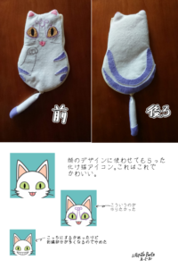 本物は羊毛フェルトで作っているようですが、私にはその技術がないので、普通のフェルトに刺繍して作りました。刺繍を嗜んでいる方からすればとんでもなく汚い出来だと思いますが、私、人生初刺繍でございますのでまぁ不器用なりによくやったと言えるのではないでしょうかね。