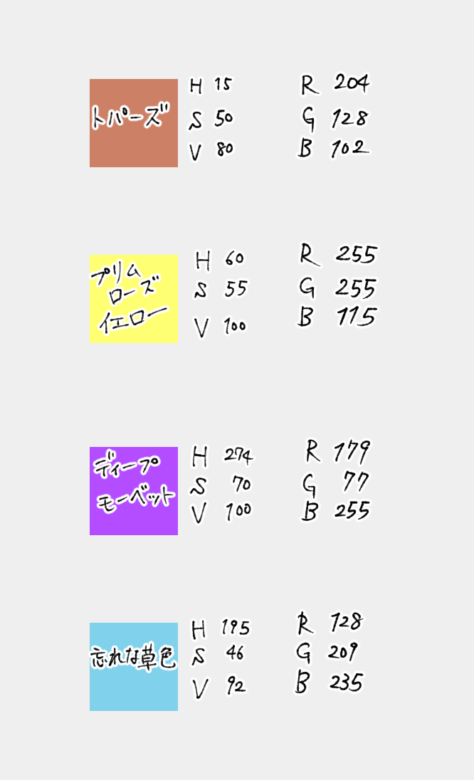 それにしても、猫屋敷の誕生日カラーは色相はてんでバラバラなのに、明度が全員かなり似通ってるのは何か、素敵だなって思います。