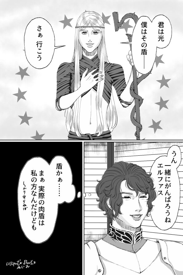 インプラでエルファスが仲間になるようになりましたが、あの仲間に呼び出したときの「君は光。僕は光を守る盾。さあ、行こう」ってセリフがめちゃくちゃ好きです。
