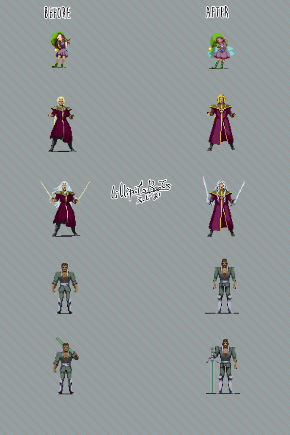 武器ありグラの方はちょっと立ち絵に寄せました。七竜剣のグラを確認するために始原口伝を見てて知ったんですけど、両手大剣使うのってゼネテスくらいなんですね。あと、ノエルがいるけど仲間にはならないし。扱いが難しい武器なのかな。まぁ、単純に大きいし、扱える人は少なそうな気もします。
