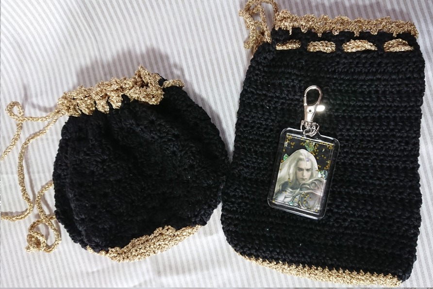 あと、おまけでちまちま編んだネメアさんカラーの巾着ポーチ。