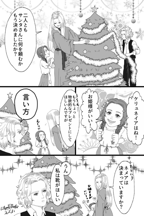 ネメアさんは割と早くサンタの正体に気づいてるけど、ケリュネイアのために付き合っている感じです。