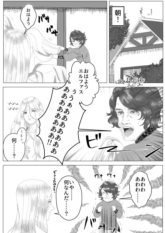 エルファス、エロいよなーっていうだけの話。エルファスが寝巻き代わりにでかいシャツ着てる経緯は、何かどっかで漫画にしたんですけど、その名残です。