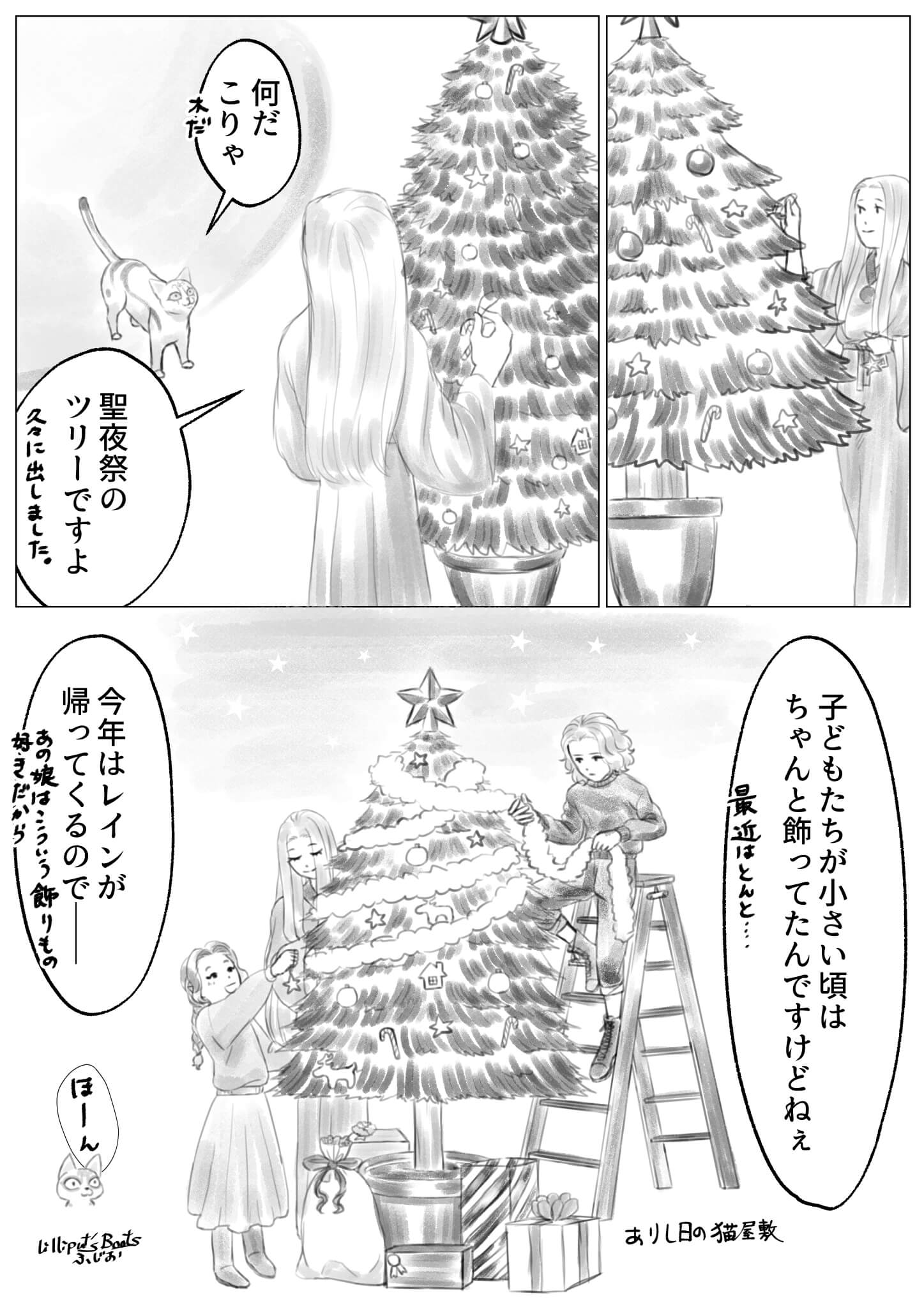 っていう漫画なんですけど、ちょっとツリーをデカく描きすぎた。このくらい重量があると猫1匹くらいじゃ倒れないよね。倒れないよね……?