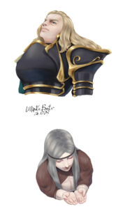 エルファスのほうは俯瞰ですけど、俯瞰は俯瞰で難しいよね。私はけっこうしっかり鼻筋描くほうなんで、どう処理していいかいつも迷います。あと頭デカくなりがち。
