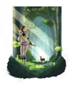 何かめちゃくちゃ時間がかかった絵です。背景の森が気に入らなくて3回くらい描き直した結果、1ヶ月くらいかかってしまいました。何をやっとるんだ。